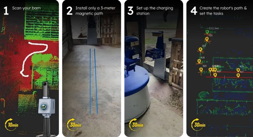 With the FJD Trion P1 LiDAR Scanner, mapping your farm becomes fast, accurate, and fully digital. In less than two hours, you can capture a centimeter-level 3D map of your barn, analyze the data, and generate a reliable digital guide to deploy the Nimbo X feed pusher — with future compatibility for other automation solutions.